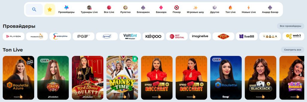 - Live-казино — игры с живыми дилерами в режиме реального времени.