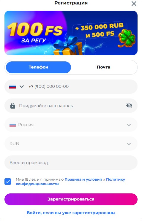 Забирай бонус до 350 000 ₽ + 600 FS после регистрации